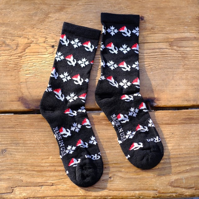 RON’S BIKES のサマーウールソックス。 中厚手のメリノで、季節問わず快適です。 サイクリングの時に蝶々がついてくるよ MADE IN USA. SPEC S-M(22.5–26.5cm) L-XL(27–32cm) 素材:メリノウール、その他 COLOR:BLACK