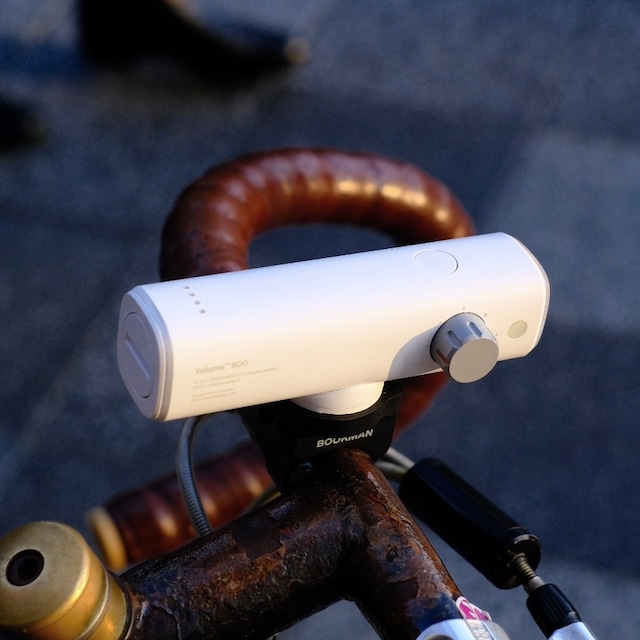 ステレオのボリュームを調整するようなダイヤルが付いたライトが入荷しました。 18650 Li-ion 3200mAhバッテリーを搭載した VOLUME™ 800。 海外のInstagramでたびたび目にしていて、このダイヤル式のデザインがどこか愛らしく、とても魅力的だと感じていました。 実際に使ってみると、操作も直感的で使いやすく、すぐにお気に入りのライトになりました。 小さなボタンに煩わされることがなく、サイドのダイアルでライトを素早く直感的に操作できます。(明るさの調節はステレオのボリュームを変えるのと同じくらいシンプルです。) 4つのレベル間で切り替わり、上部のボタンを軽く押すだけで点滅と点灯に切り替えられます。 USB-C充電式で交換可能なバッテリーを搭載しているため、バッテリーの寿命が尽きた場合はバッテリーを簡単にリサイクルできます。 耐久性を重視した設計で、頑丈さと効率的な放熱のためにアルミニウムボディを採用しています。その為、電池も長持ちして寿命も長いです。 ライトビームは必要な場所に最適に照射するよう設計されており、楕円形状の光はダークスポットを無くします。 SPEC 防水性:IPX5 製品重量:120グラム 充電ポータル:USB-C サイズ:114x38x39 mm 付属品:ガーミンマウント、ハンドルバー、ドロップバー用マウント(アーレンキー付属)、充電ケーブル 保証:2年 スタディーモード:100%3時間、50%5時間、25%11時間、10%17時間、5%35時間 フラッシュモード:モード①6時間、②11時間、③15時間、④32時間、⑤120時間 マウントについて: このライトにはガーミンマウントとハンドルバー用のマウントが装備されており、バーに取り付け可能です。ガーミンには無限のオプションがあるので、適したものをお選びください(付属品以外は別途ご購入下さい)。ガーミンとゴープロへのアダプターが付属しています。 バッテリーインディケーターについて: クリアに表示されますが目立ちすぎない設計にしています。バッテリーインディケーターは バッテリー残量が5%になると点滅します。オフの場合はボタンをすばやく押すとパワー残量が表示されます。