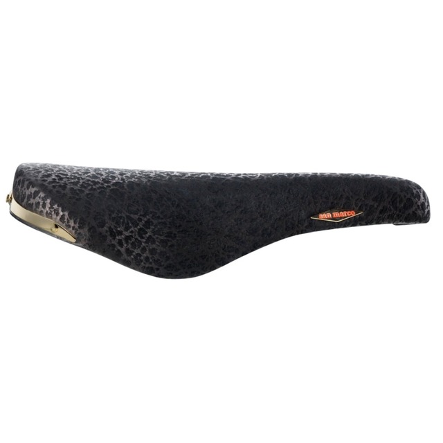 1935年創業のイタリアのサドルブランド「SAN MARCO」の人気を誇るリノレザーサドルです。 サイズ:W 143 x L 282 mm 重量 :382グラム カバー:リノ レザー レール:カーボン スチール ゴールド カラー カラー:ブラック