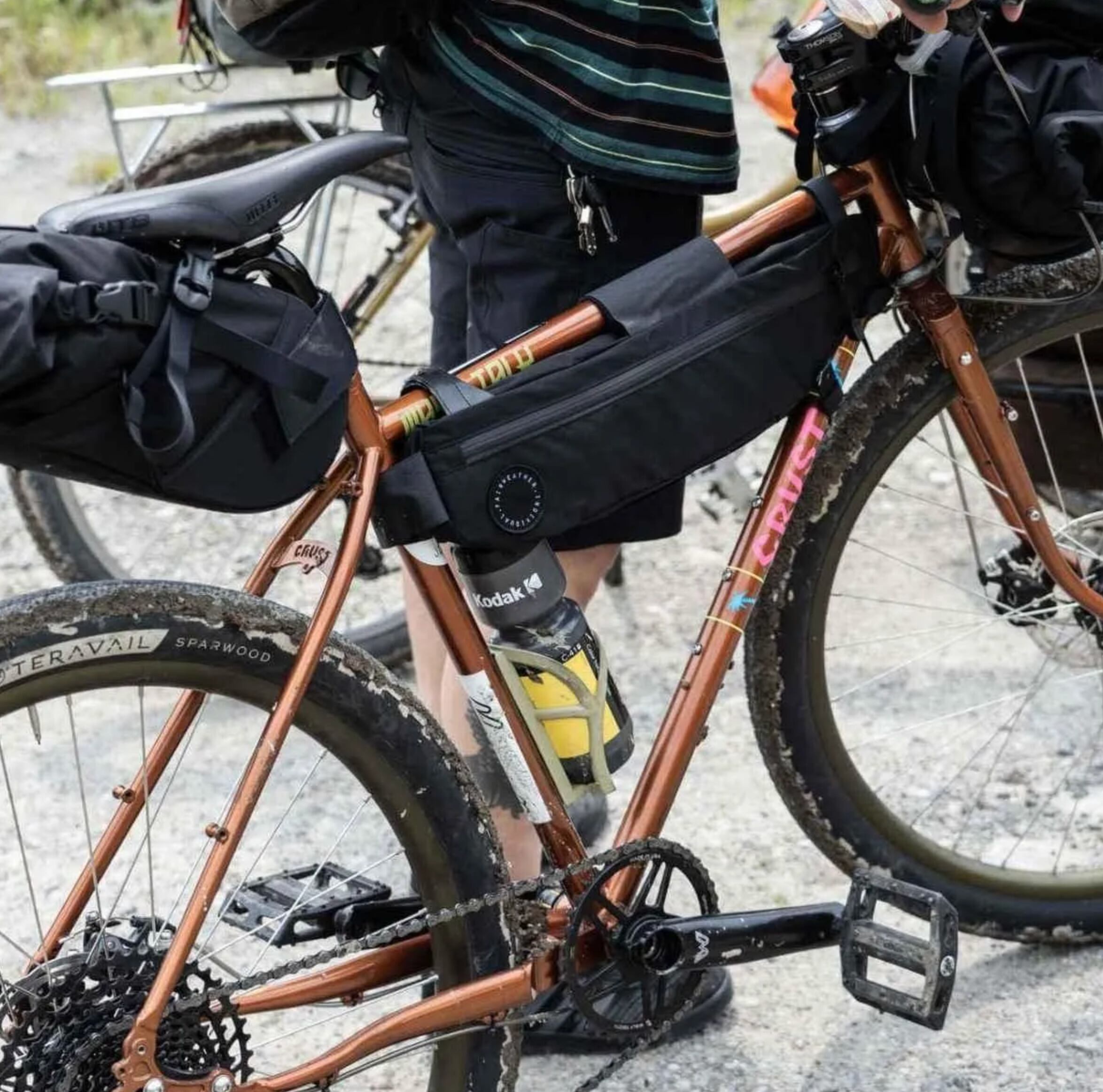 “FAIRWEATHER / フェアウェザー”のトップチューブ下に装着するフレームバッグ。