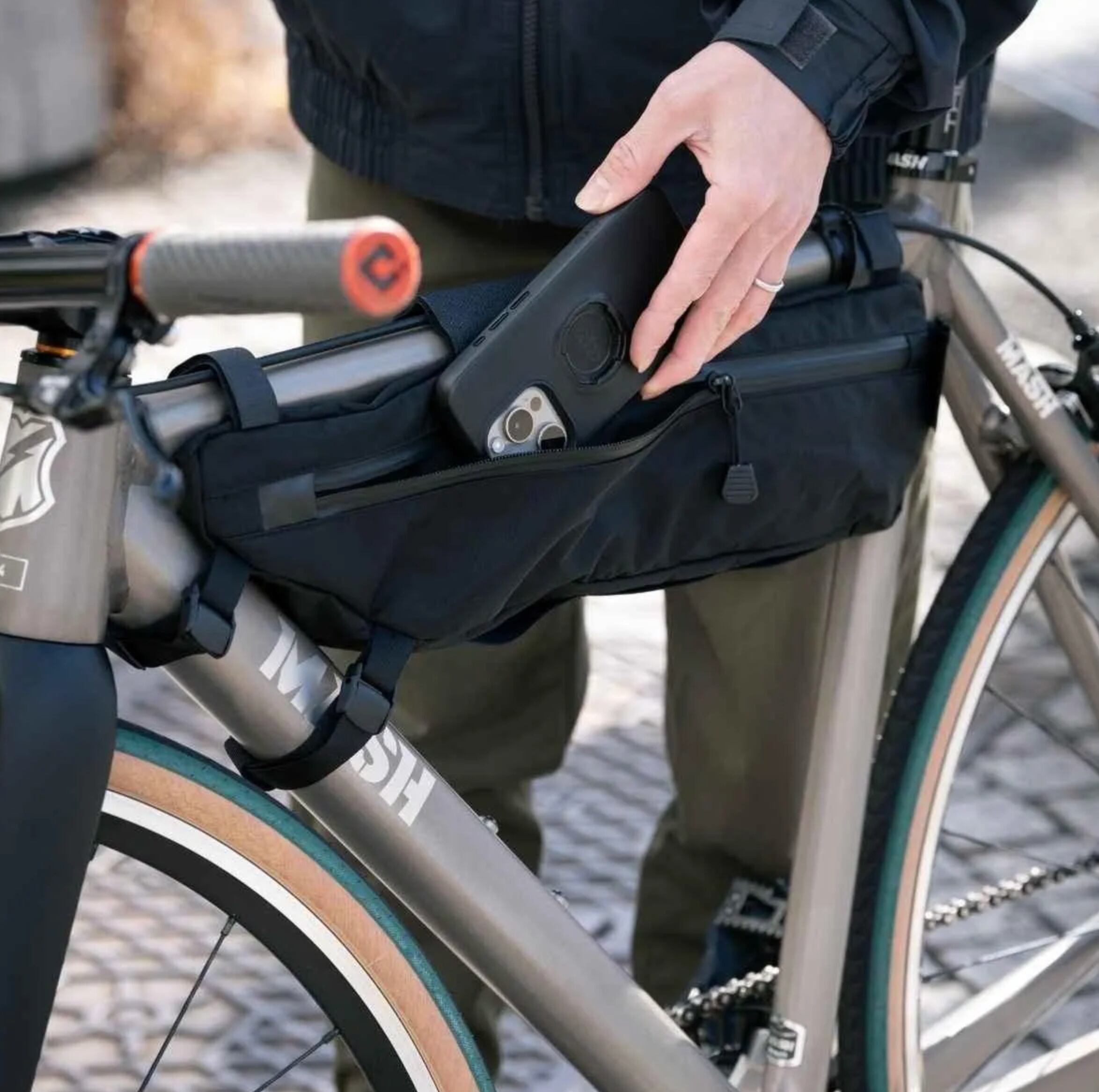 ツーリングやロングライドはもちろん、日常の移動にも使いやすい実用的なフレームバッグです。