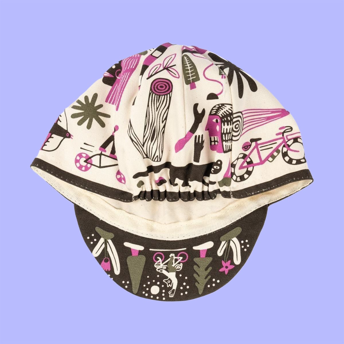 イタリアの歴史ある工房で丁寧に縫い上げられたクラシカルなサイクルキャップで、カリフォルニア州サンタクルーズを拠点とするアーティスト、Wyatt Herseyによるグラフィックがアクセントになっています。