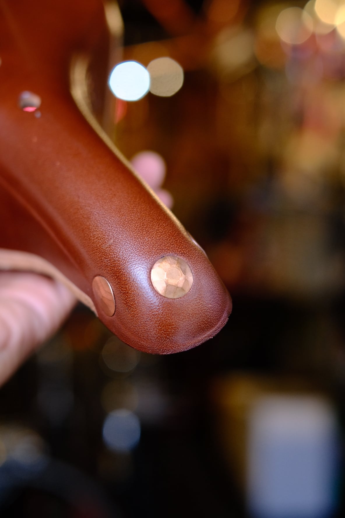 サドルトップは植物タンニンなめしのプレミアムレザー。乗り込むほどに自分の形に馴染み、唯一無二のフィット感へと育っていきます。リベットには手打ちの銅製リベットを使用し、細部まで職人の技が光る仕上がり。クラシックなスタイルながら、細身のバイクやモダンなスチールバイクにもよく似合う、時代を超えた存在感があります。