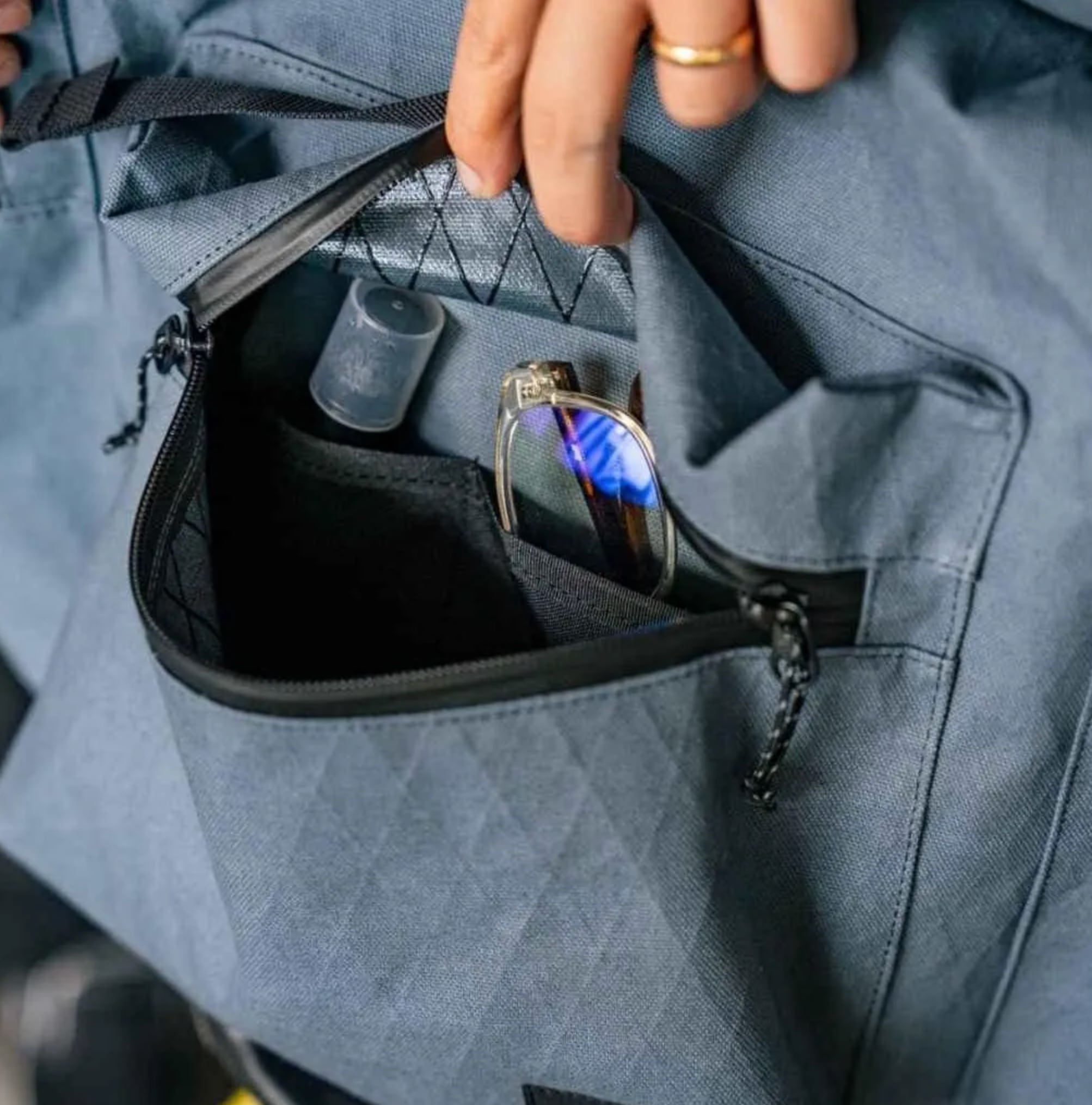 自転車だけでなく、電車や旅行など多様なシチュエーションで活躍するように、収納力と整理のしやすさにこだわったデザインで、PCスリーブや止水ファスナー付きポケット、隠しポケットも付いています。