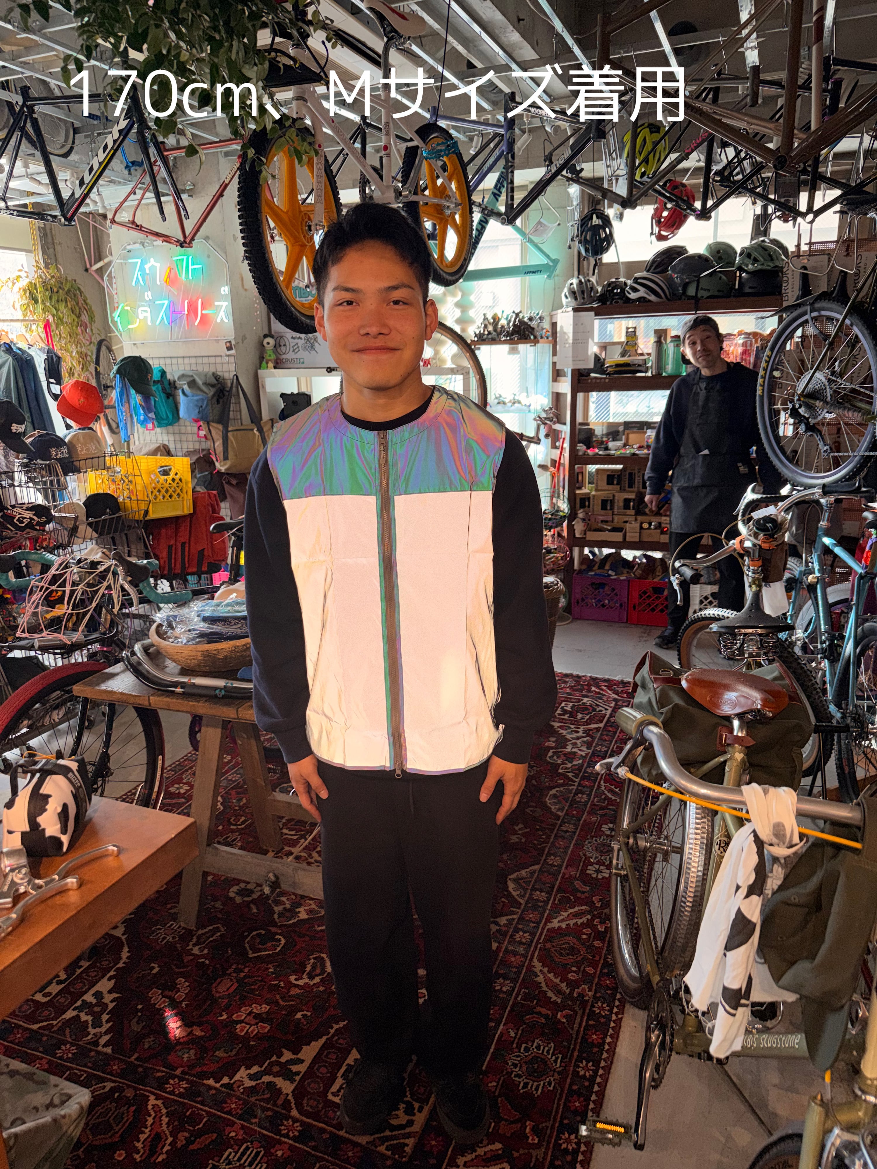 GOFLUO ORION(オリオン)は、夜間や早朝のライド、通勤シーンに最適な反射セーフティベストです。最大150m先から視認できる高性能リフレクターを採用し、視認性と安全性をしっかり確保しつつ、日中はほんのりと虹色の光沢を放つ上品なグレーで、普段着にも合わせやすいスマートなデザインが特徴です。背面はやや長めのロングテール仕様で、前傾姿勢でも背中が出にくく、ツーウェイジップにより温度調整もスムーズにできます。両サイドのシームポケットにはスマホや鍵などが収納でき、使い勝手も優れています。反射ベスト特有の“いかにも感”がなく、自転車でも徒歩でも自然に使えるスタイリッシュな一着です。