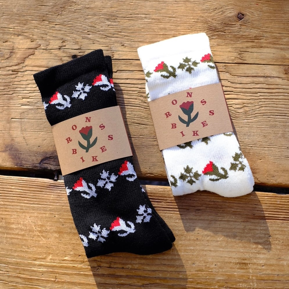 【RON'S BIKES...Ultra Romance】MID-WEIGHT MID-CALF SOCKS (BLACK)