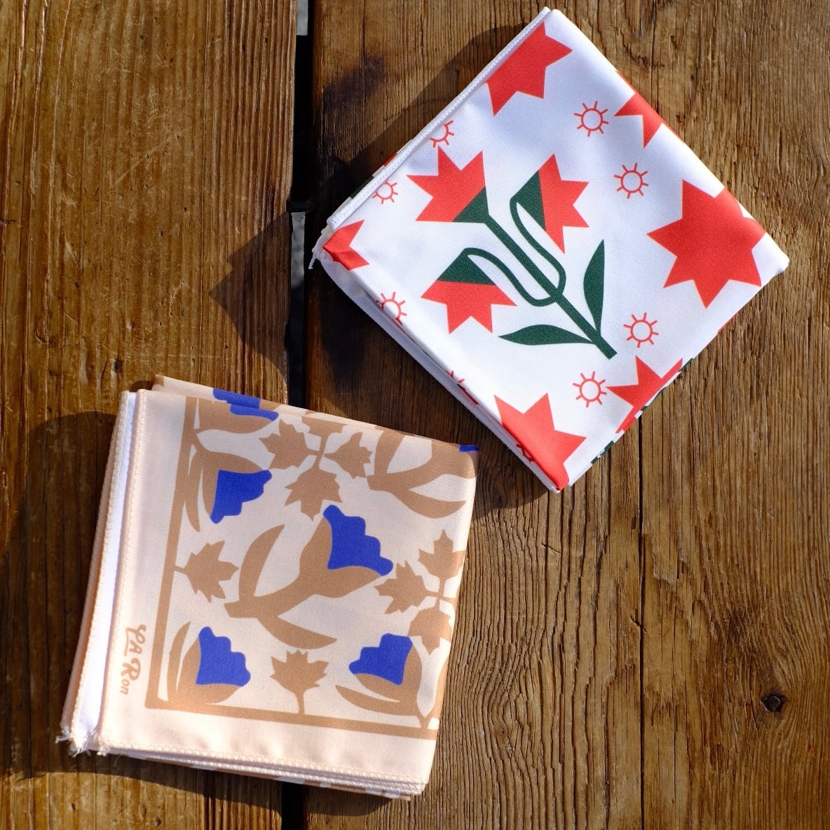 マ―サ・スチュワートのドキュメンタリーで見たキルトがとても印象的で、そこから着想して今回のバンダナを作ったそうです。
