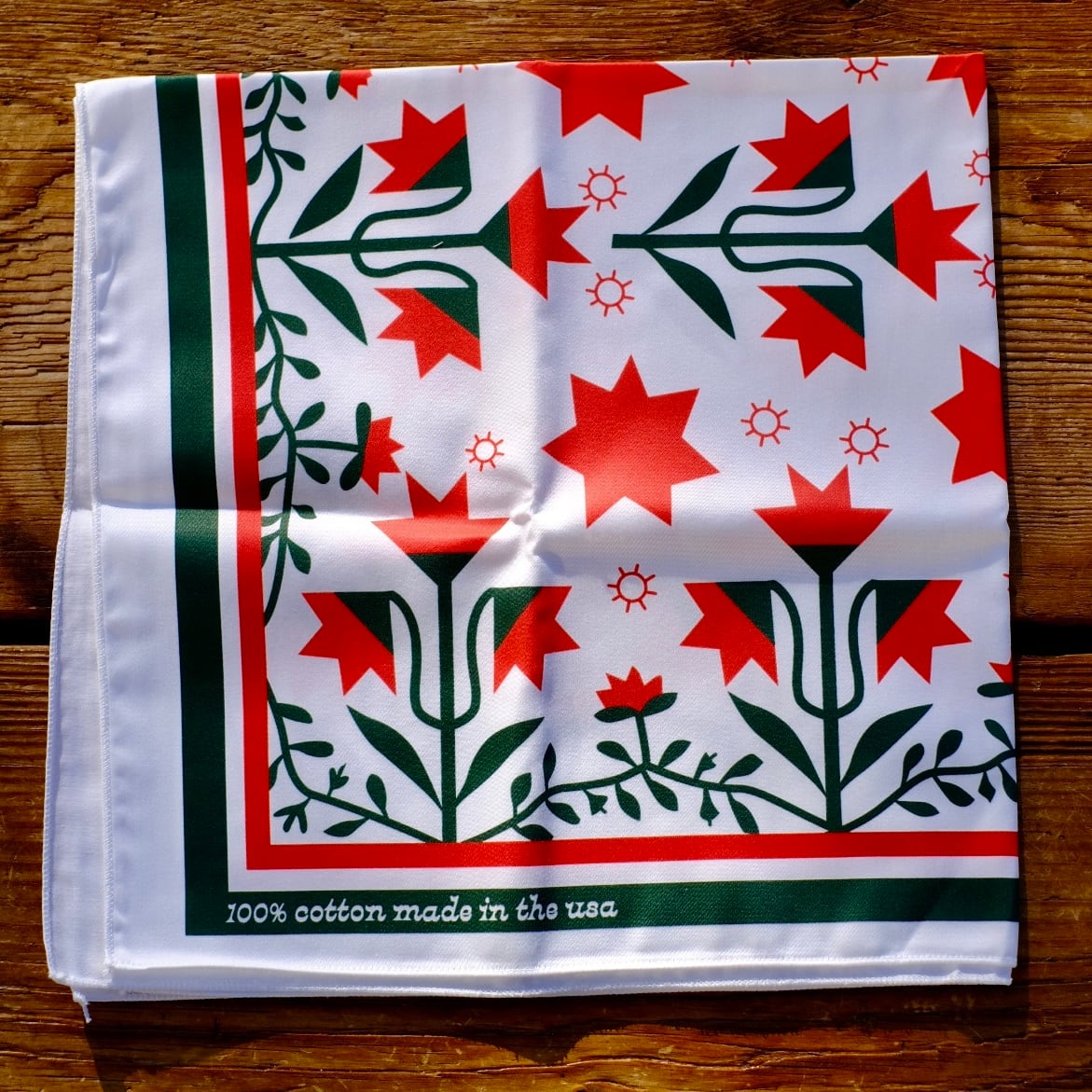 “マ―サが気に入るものなら、きっと良いに違いない” という思いで仕上げられた、サウスカロライナ製の 片面プリント・コットンサテンバンダナ(22×22インチ) です。