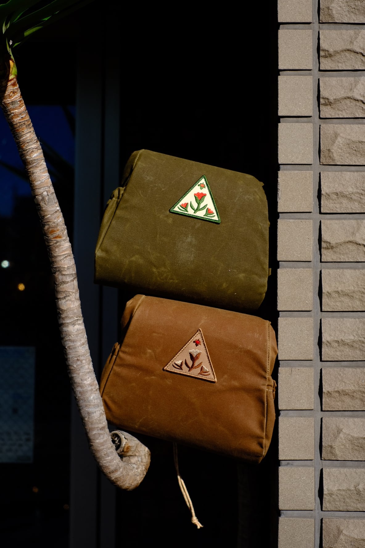 ワックスキャンバスを使った小型バッグで、走行中でも片手で開けられる扱いやすさが特徴です。