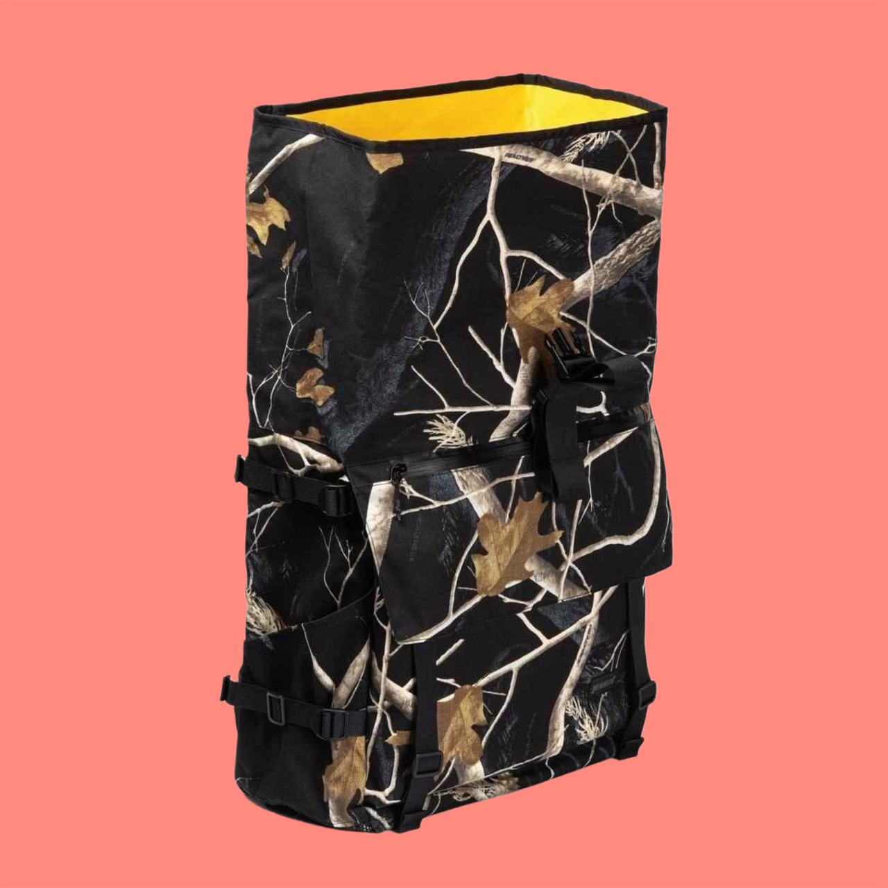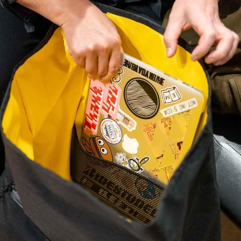 生地はタフなナイロンと防水性のあるターポリンの組み合わせ。