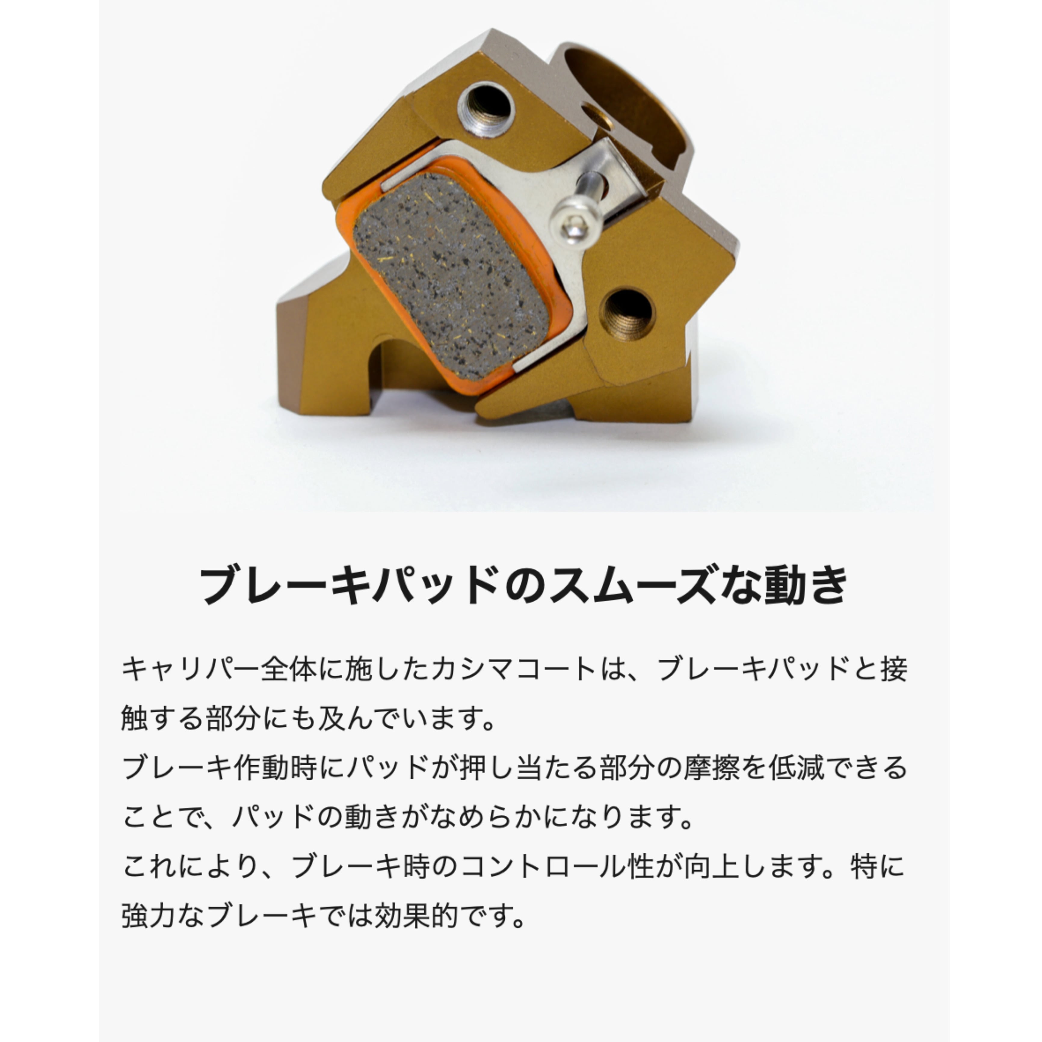 ピストンやブレーキパッド周辺部品にもカシマコートを採用。