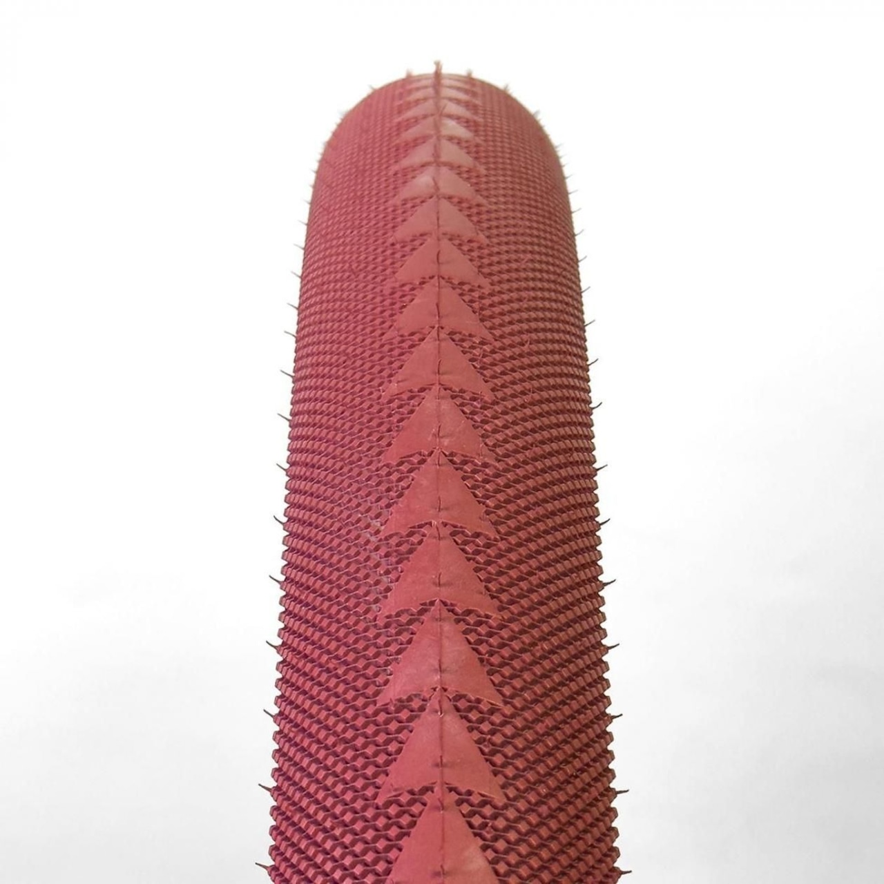一見スリックに近いルックスながら、トレッド全体に施された3Dダイヤモンドファイルパターンが、舗装路から荒れた路面まで安定したグリップを生み出します。