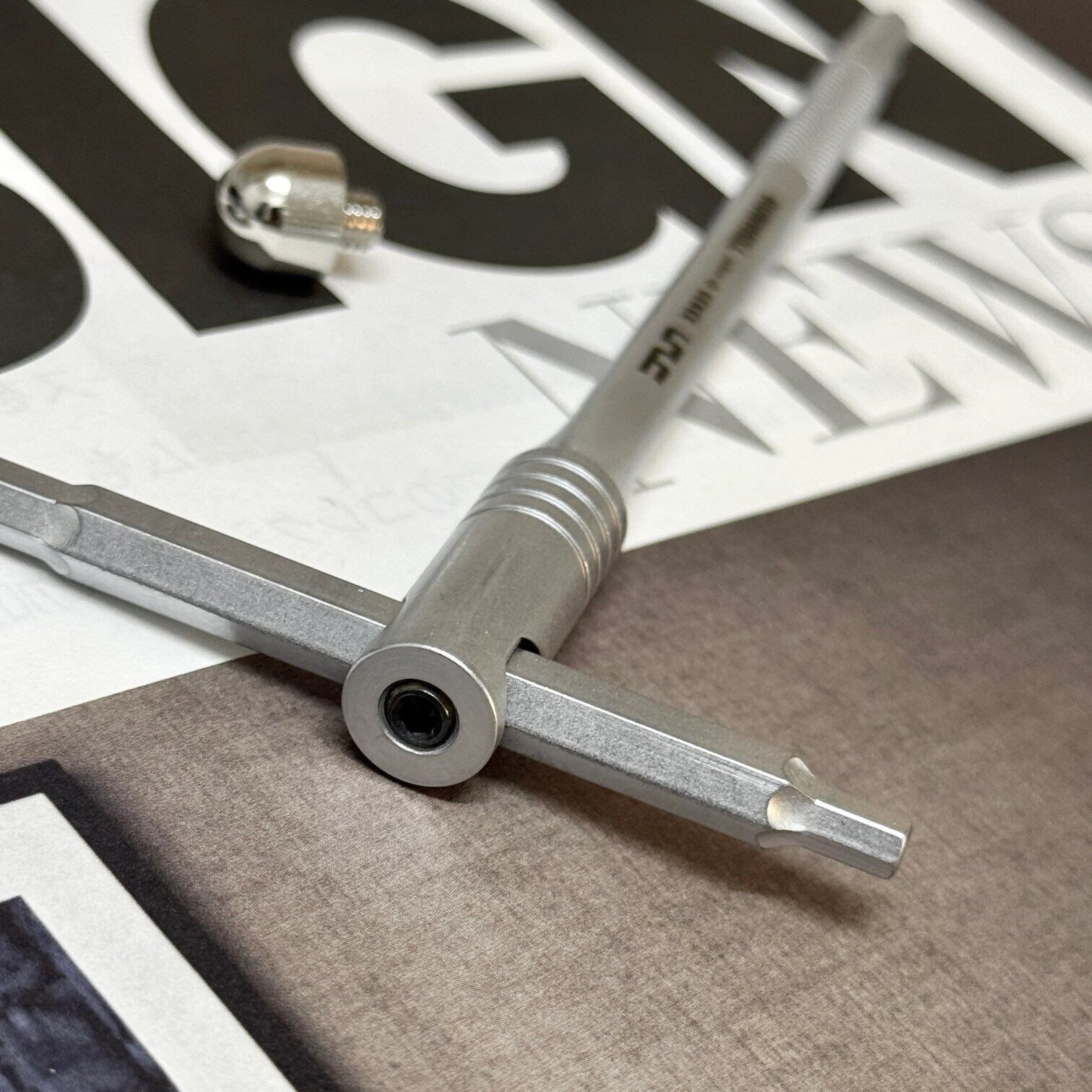 トラックバイクでの使用を前提に開発された、4mm × 5mm対応のX型六角レンチ。