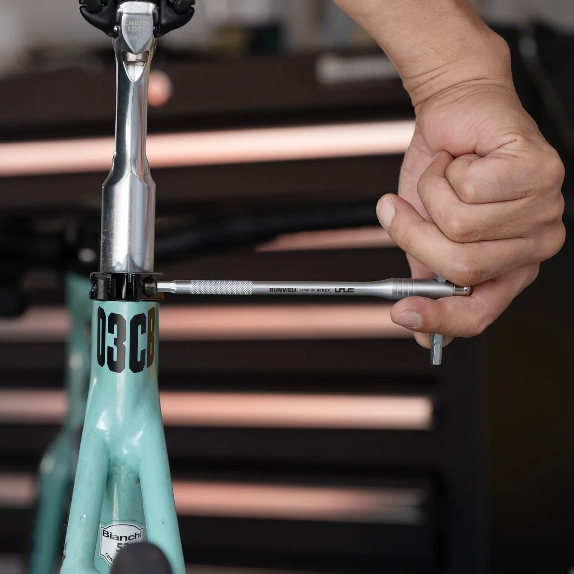 ステム、ハンドル、シートポスト、チェーンリングなど、固定ギアバイクで頻繁に触るボルト作業を想定した設計。