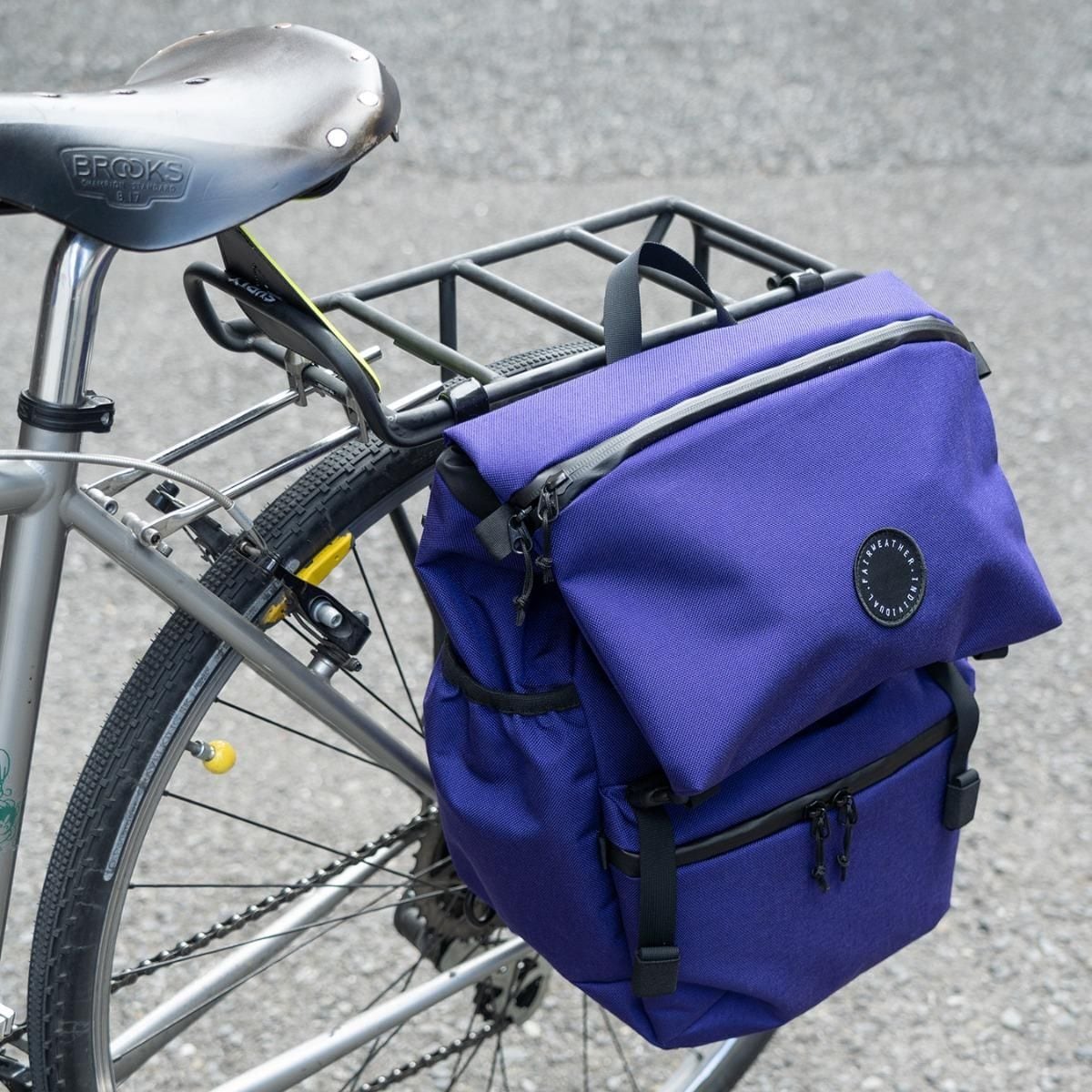 FAIRWEATHER(フェアウェザー)は、“快晴”を意味する言葉をブランド名に持つ、日本発のバイクバッグブランド。本製品は、クラシックなフラップトップ型バックパックのデザインをベースに、現代のサイクリングスタイルに合わせて再構築したパニアバッグです。