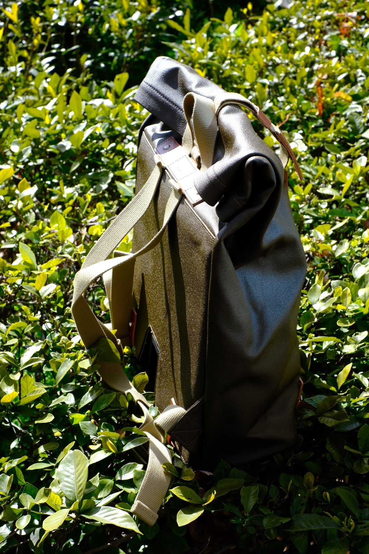 容量は26Lで、ロールトップ構造により荷物量に合わせてサイズ調整が可能。内部には13インチまたは15インチ対応のクッション入りノートPCスリーブとオーガナイザーを備え、通勤時のPCや小物類もすっきり収納できます。