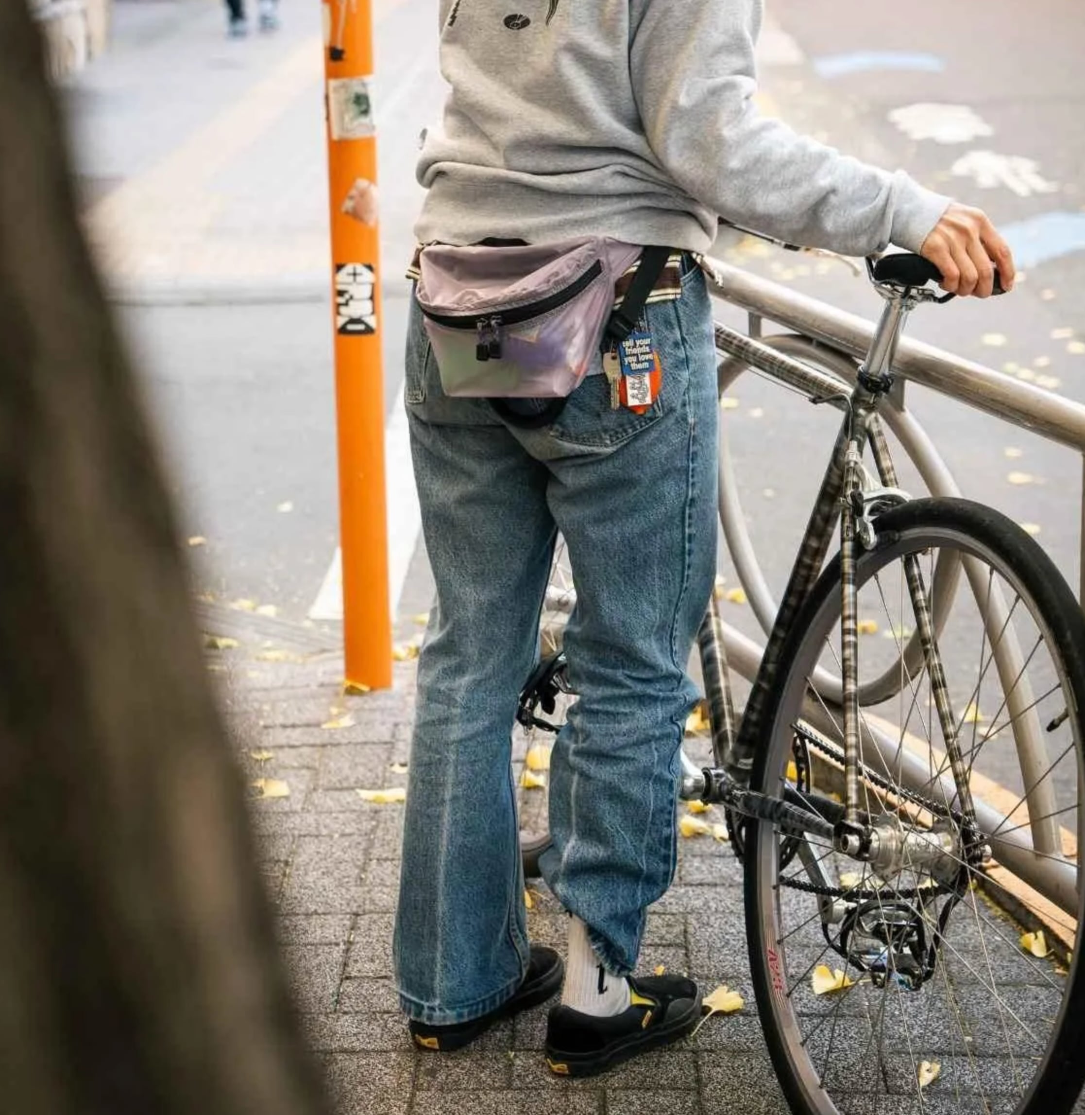 腰に巻いたり、斜め掛けしたりできるクラシックなボディバッグタイプで、横一文字のファスナーは片手でも開けやすく、必要なものをサッと取り出せます。