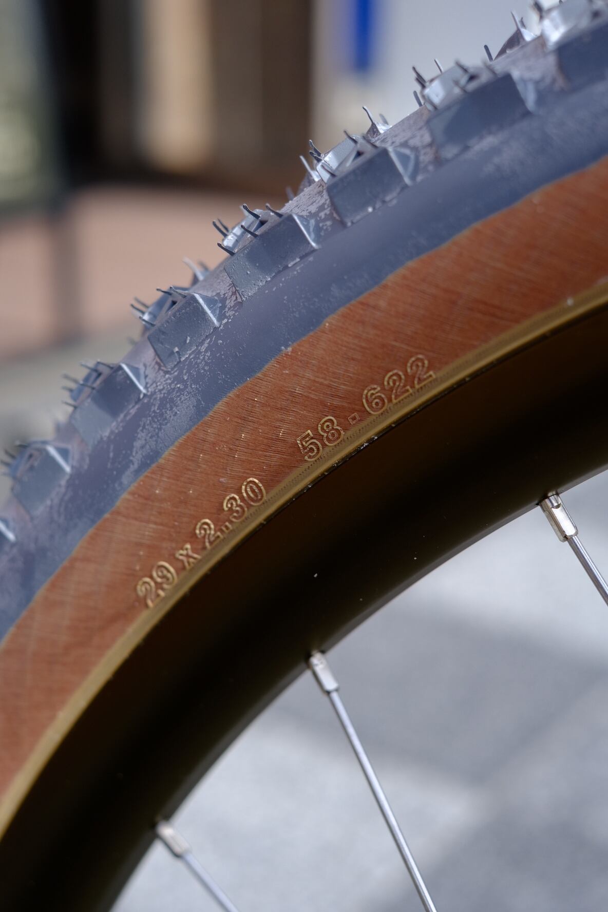ノブ間隔に余裕を持たせたトレッドパターンは泥詰まりしにくく、舗装路からグラベル、トレイルまで幅広い路面状況に対応します。