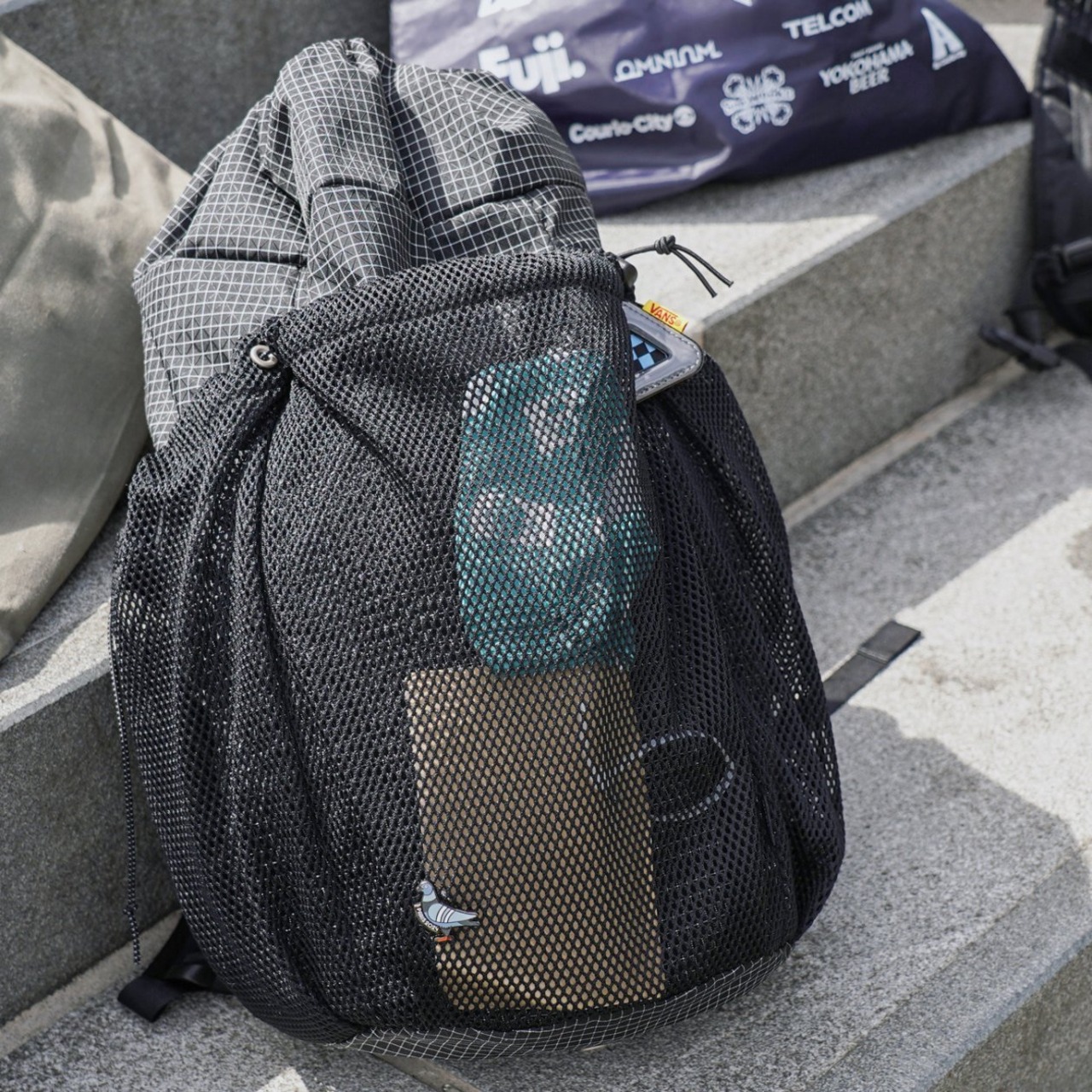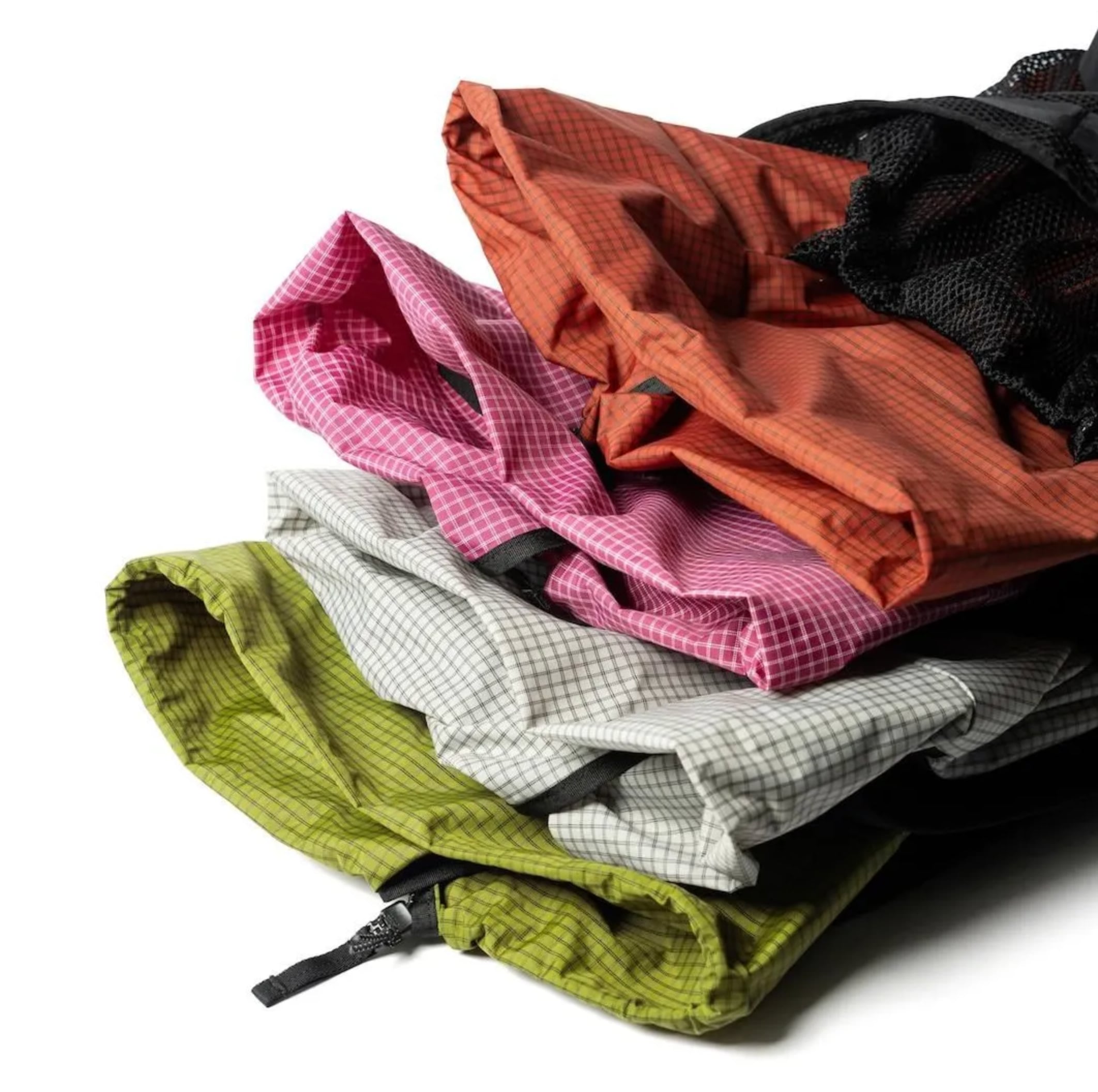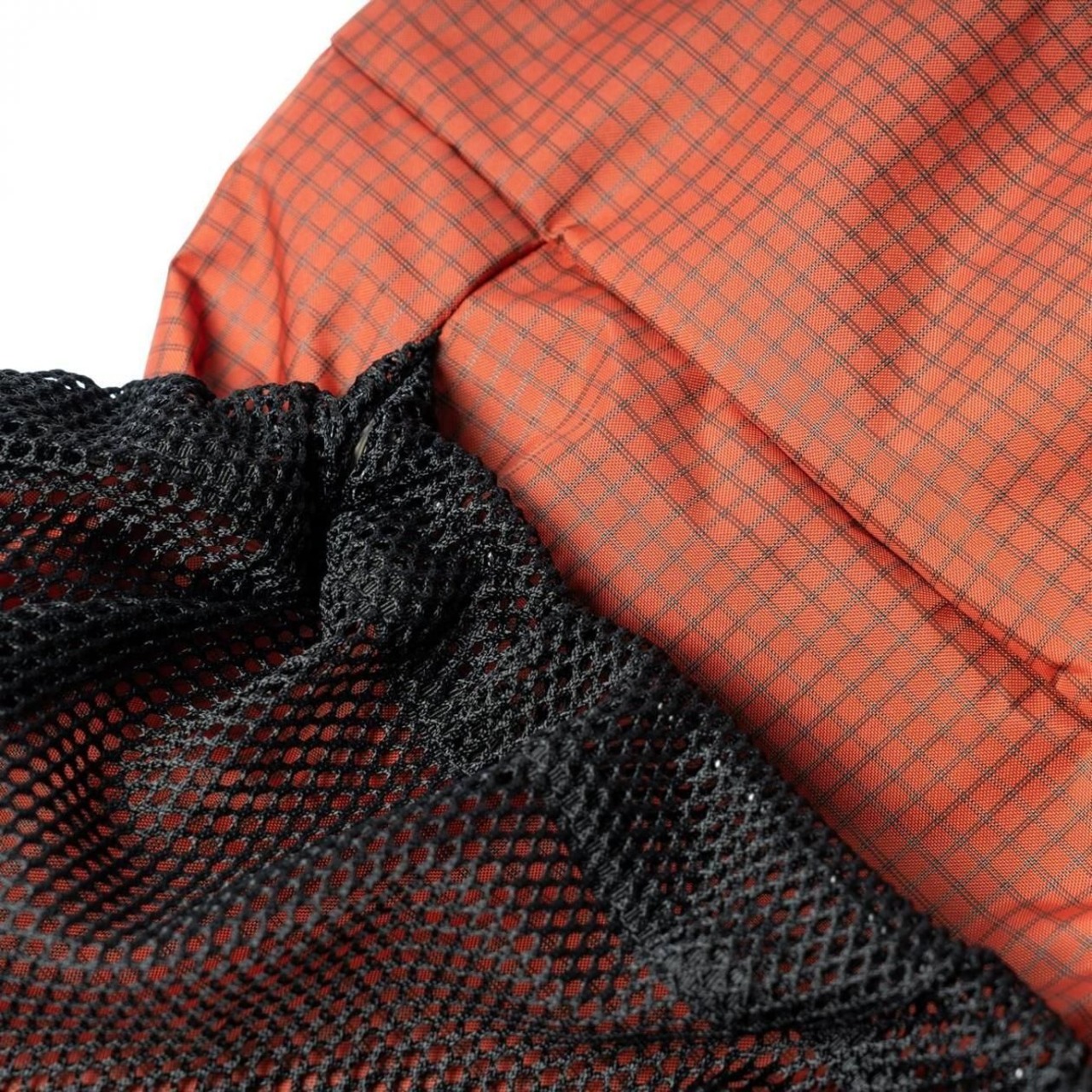 FAIRWEATHERの「PACKABLE PACK (HMPE RIP/BLACK)」は、驚異的な強度を持つ高分子量ポリエチレン(HMPE)繊維を格子状に織り込み、リップストップ加工を施した素材を使用。軽量でありながら、抜群の耐久性を誇ります。