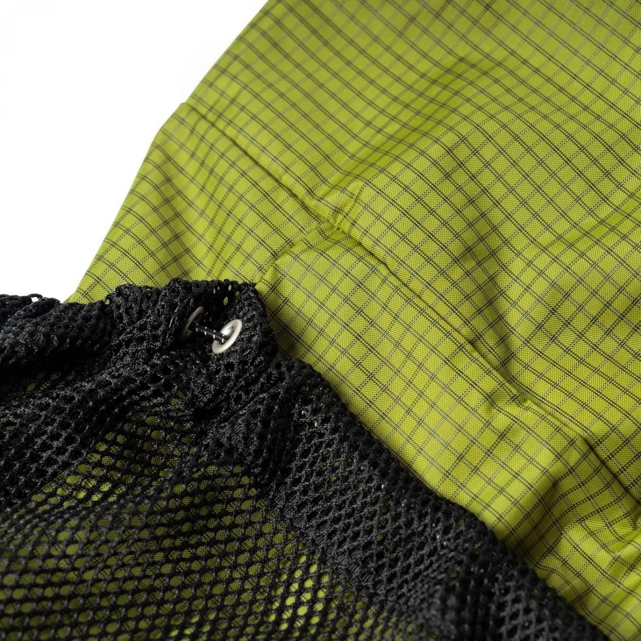FAIRWEATHERの「PACKABLE PACK (HMPE RIP/BLACK)」は、驚異的な強度を持つ高分子量ポリエチレン(HMPE)繊維を格子状に織り込み、リップストップ加工を施した素材を使用。軽量でありながら、抜群の耐久性を誇ります。