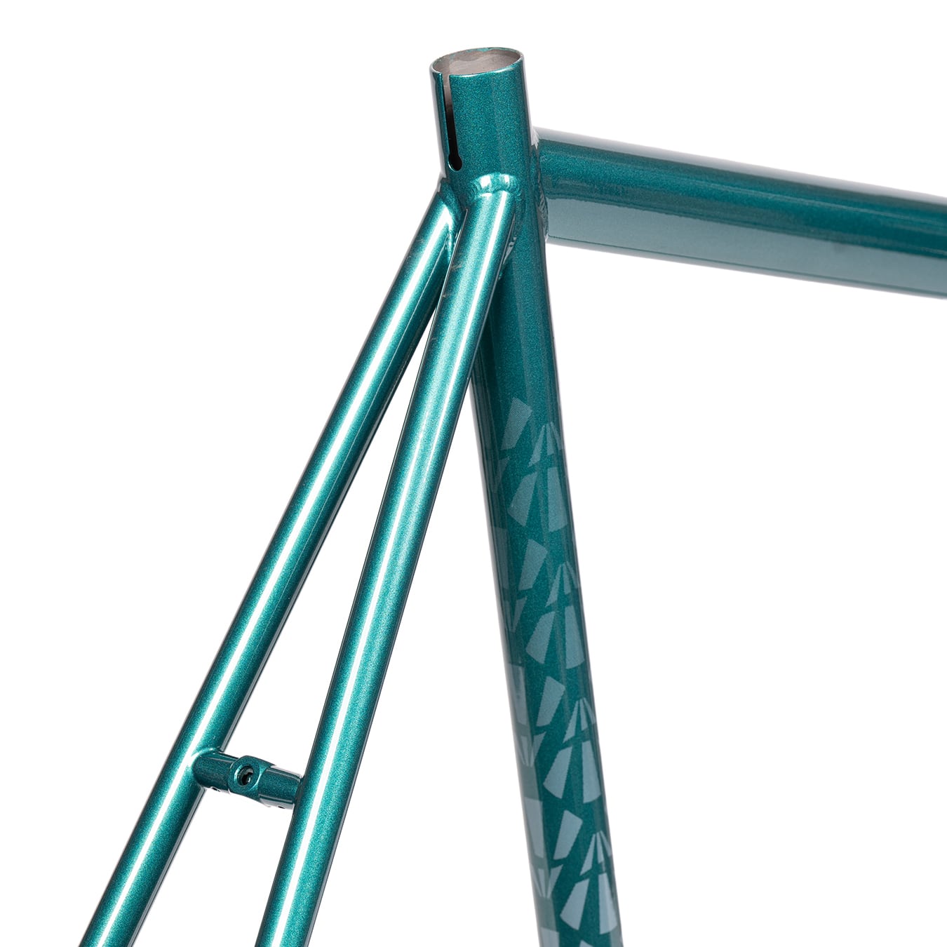 トップチューブとダウンチューブには、エアロ形状の4130クロモリ製オリジナルカスタムバテッドチューブを採用。