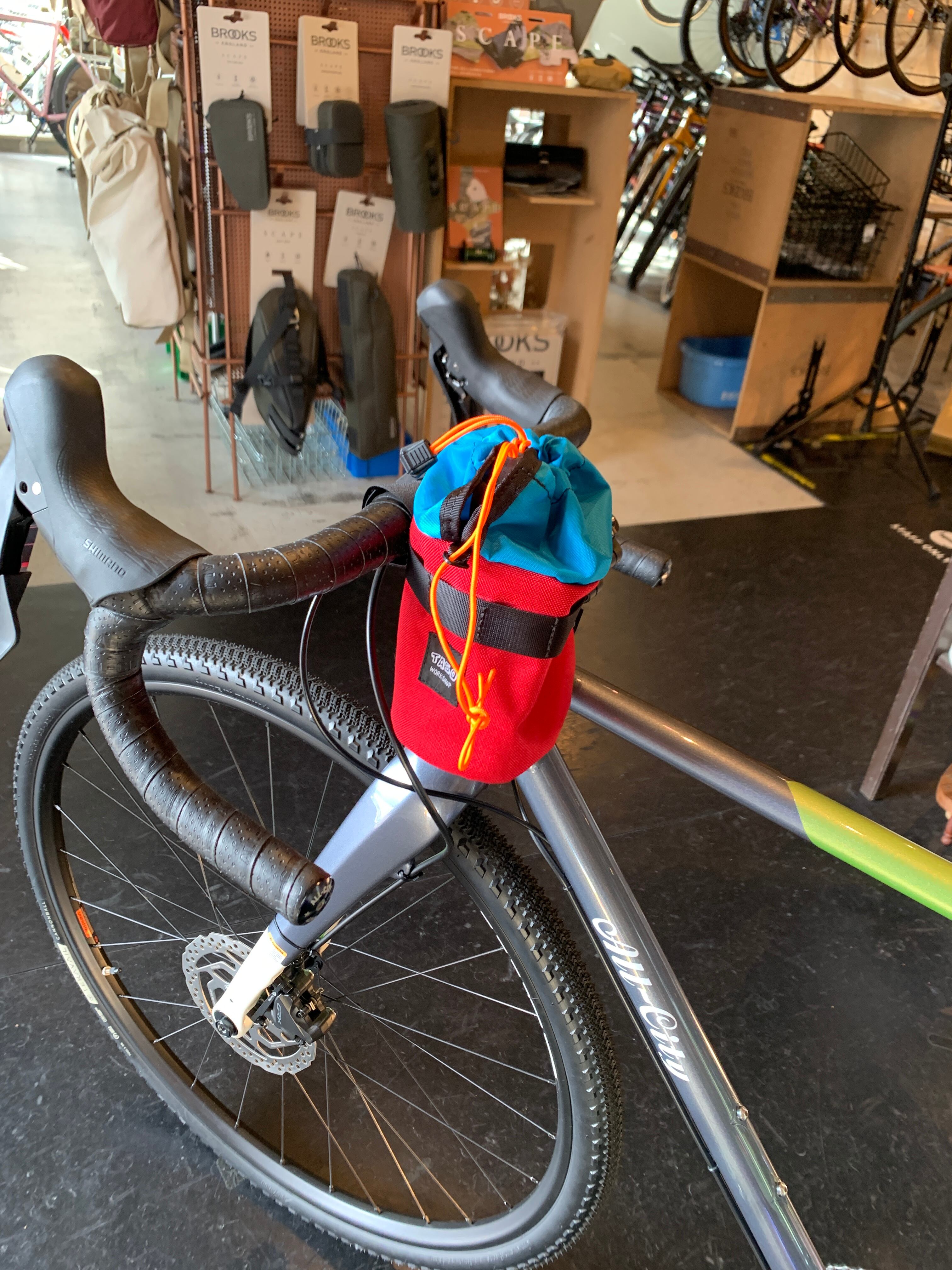 携帯、ボトルや携行食、モバイルバッテリー、コンデジ等身の回り品を入れるのに便利で、巾着の開閉はグローブを付けてても開け閉めしやすい特殊なパーツで開閉します。