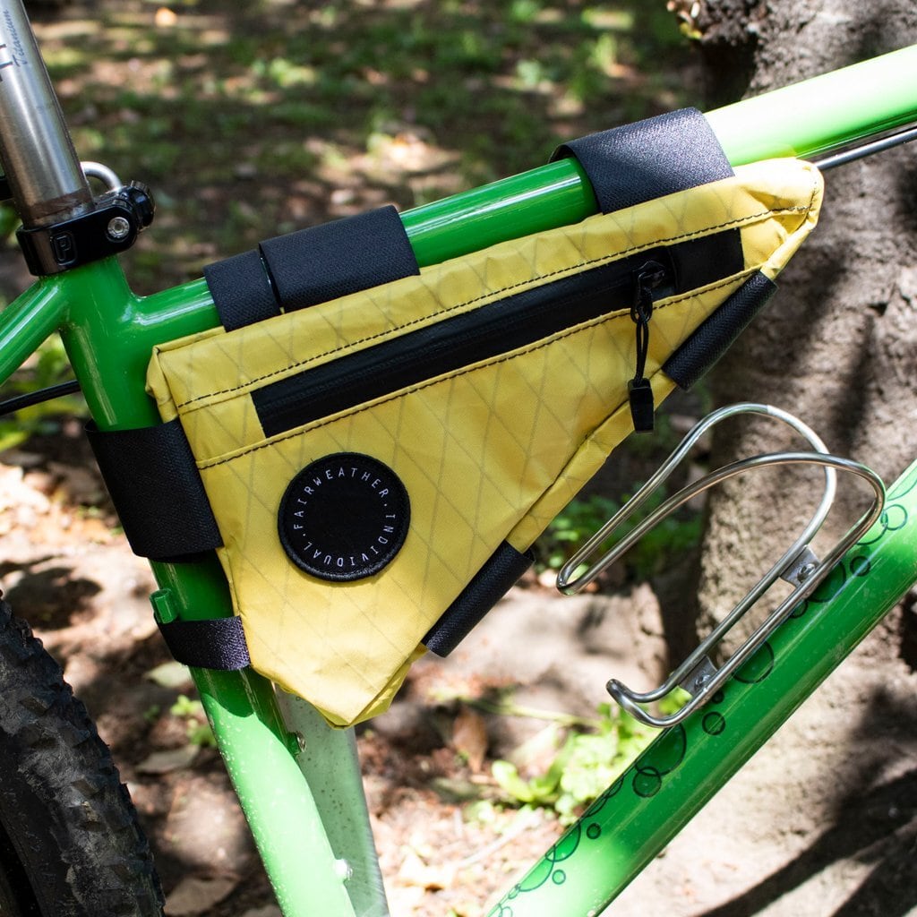 FAIRWEATHERの商品は水や泥などにも強く作っており、雨天のライドでも活躍できるバッグを取り扱っています。