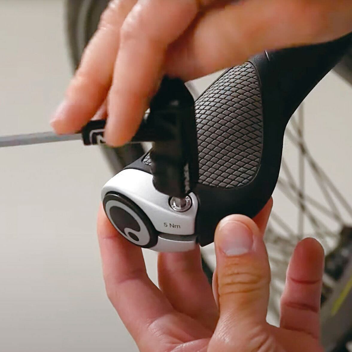 手のひら全体で支える独自形状により、長時間のライドでも手首や指への負担を軽減。