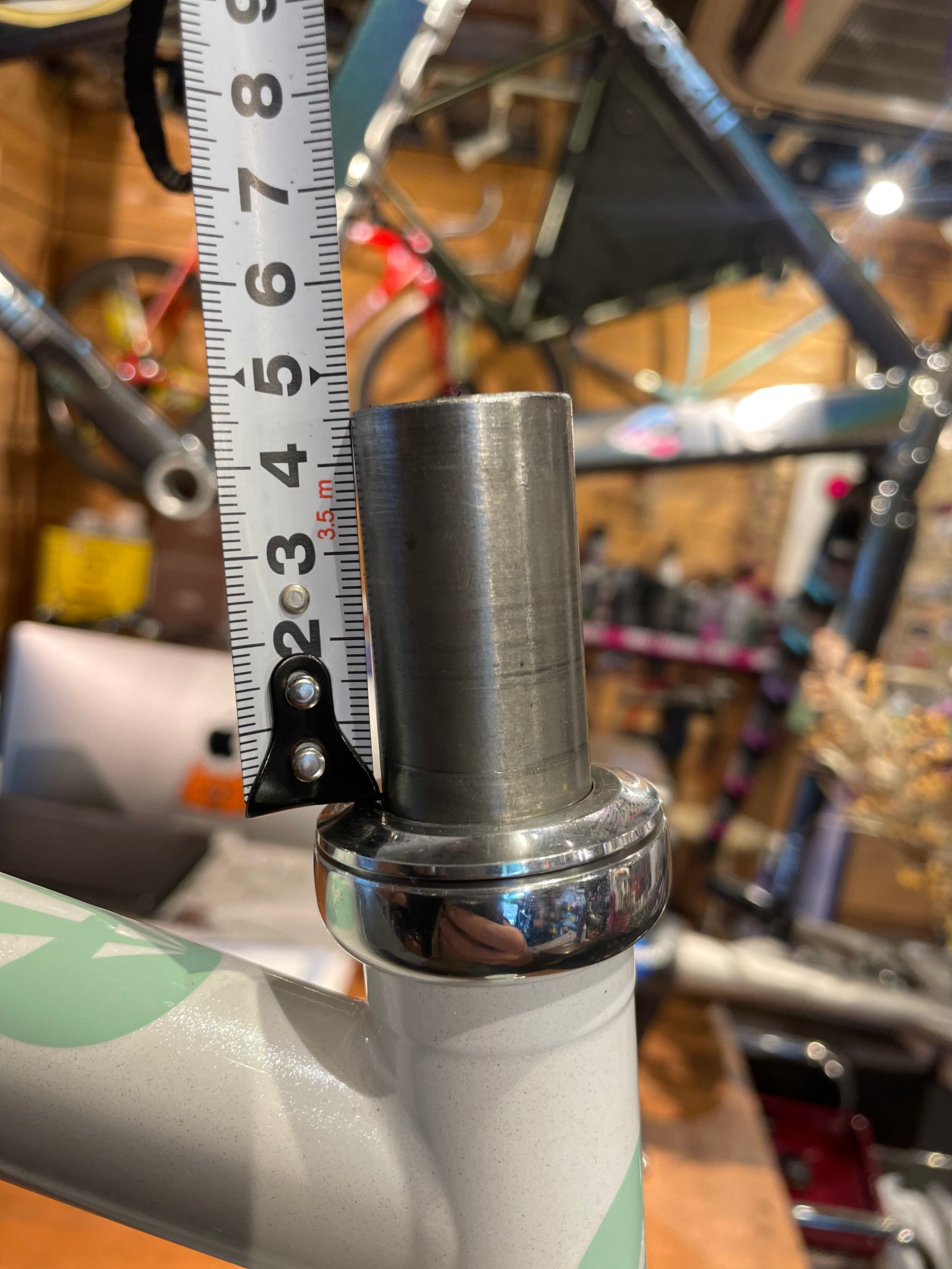 ※コラムは、ヘッドパーツ上面から4.5cmまで残してコラムカットしております。(1〜1.5cm分のスペーサーを入れるくらいがちょうどいいです。)