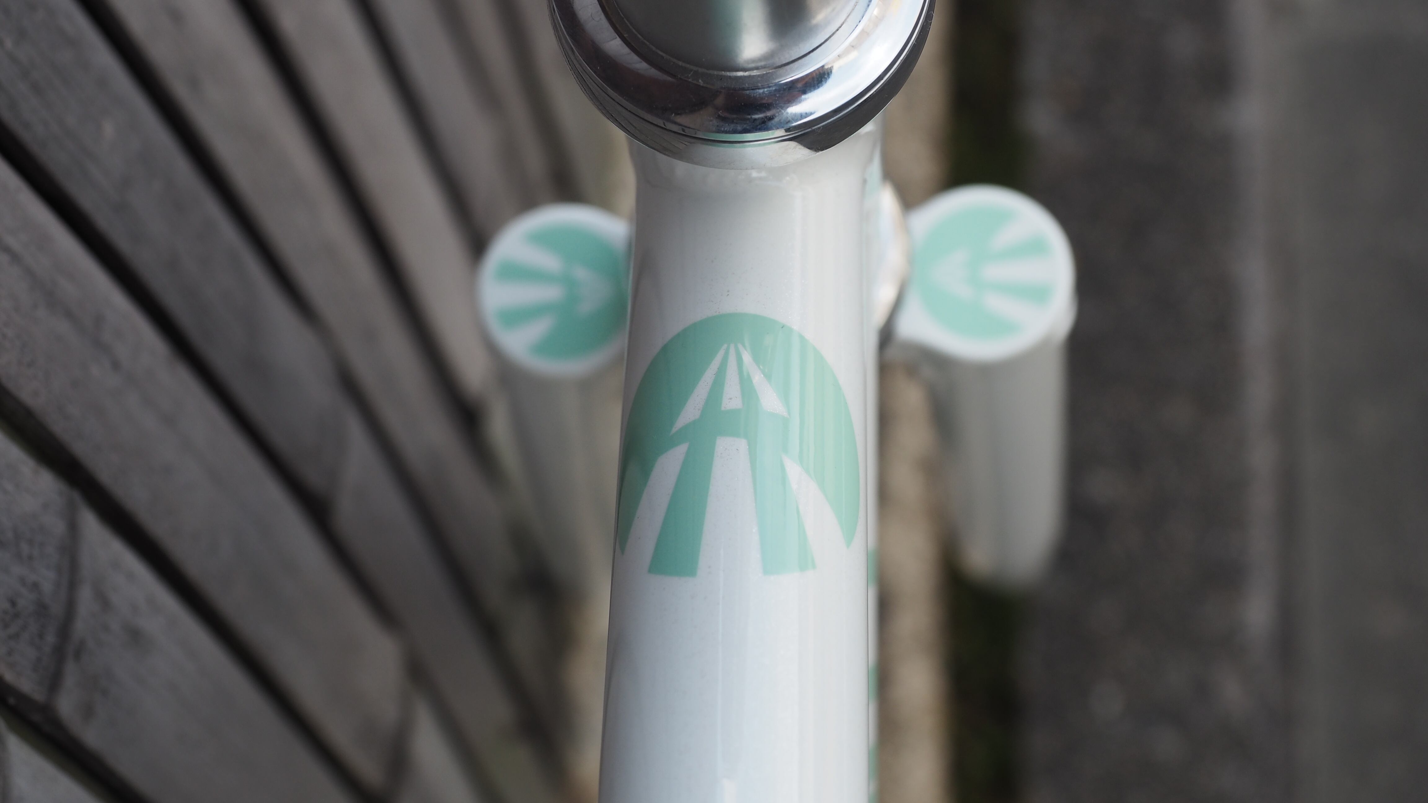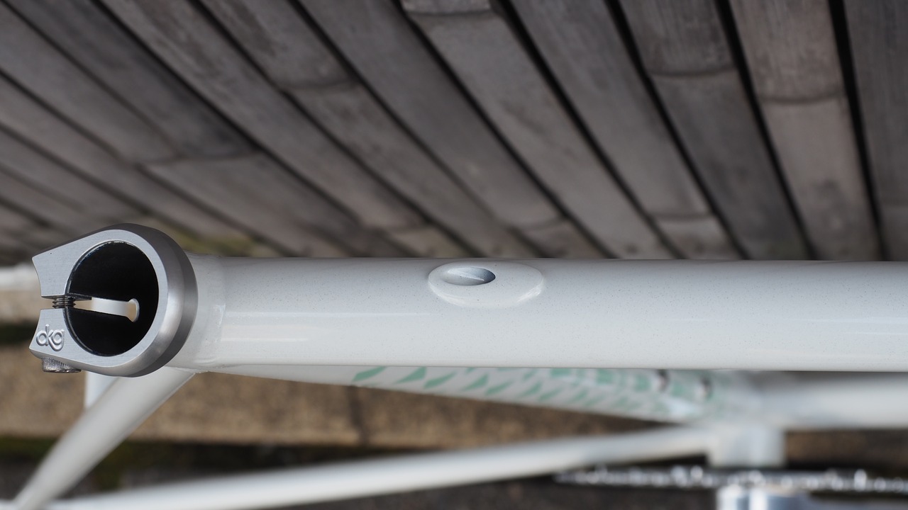 前下がりのトップチューブ(パシュート)が特徴的なデザイン。