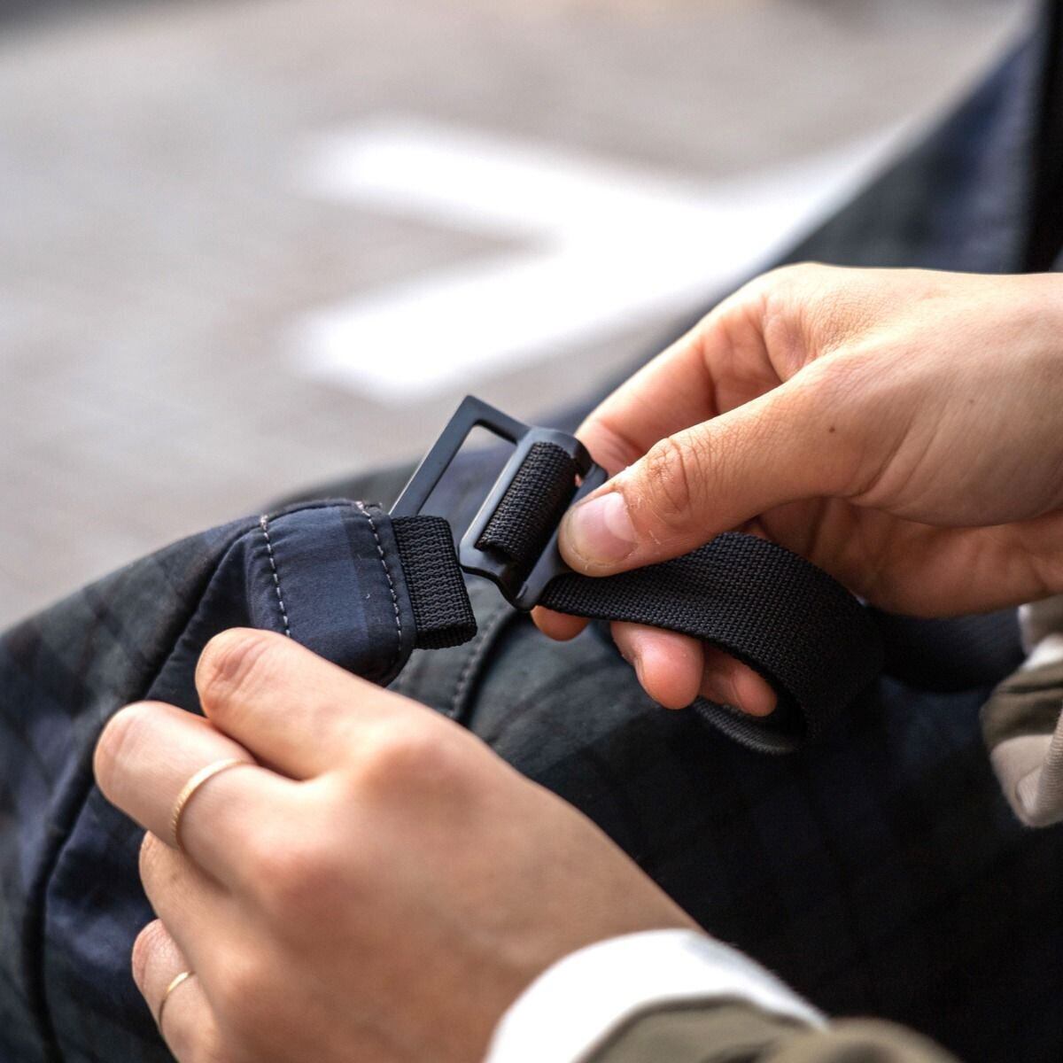 自転車に乗せて運転する際、中のものが飛び出さないようフタをくるっと巻いて止めたり、フック式のバックルを本体から取り外してバスケットに固定することも出来ます。