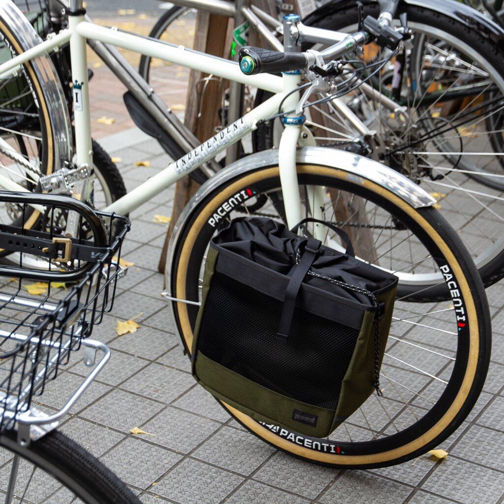 口元の巾着で蓋ができるので、自転車に乗っているときに中身が飛び出す心配もありません。