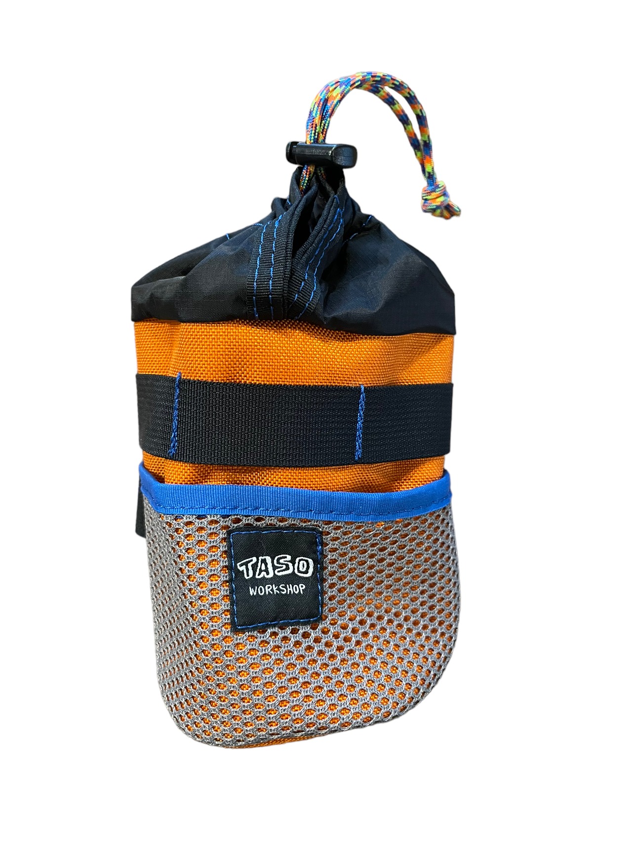 携帯、ボトルや携行食、モバイルバッテリー、コンデジ等身の回り品を入れるのに便利で、巾着の開閉はグローブを付けてても開け閉めしやすい特殊なパーツで開閉します。