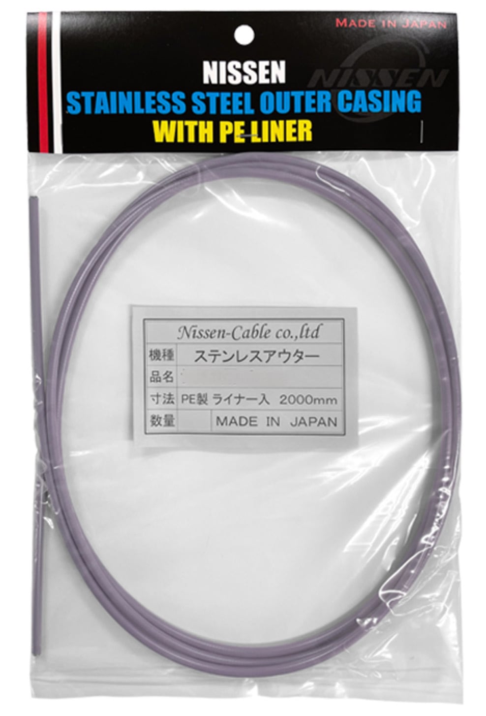 【日泉ケーブル】ステンレスシフトアウター 4mm×2m ふじ色 ヘッダ付