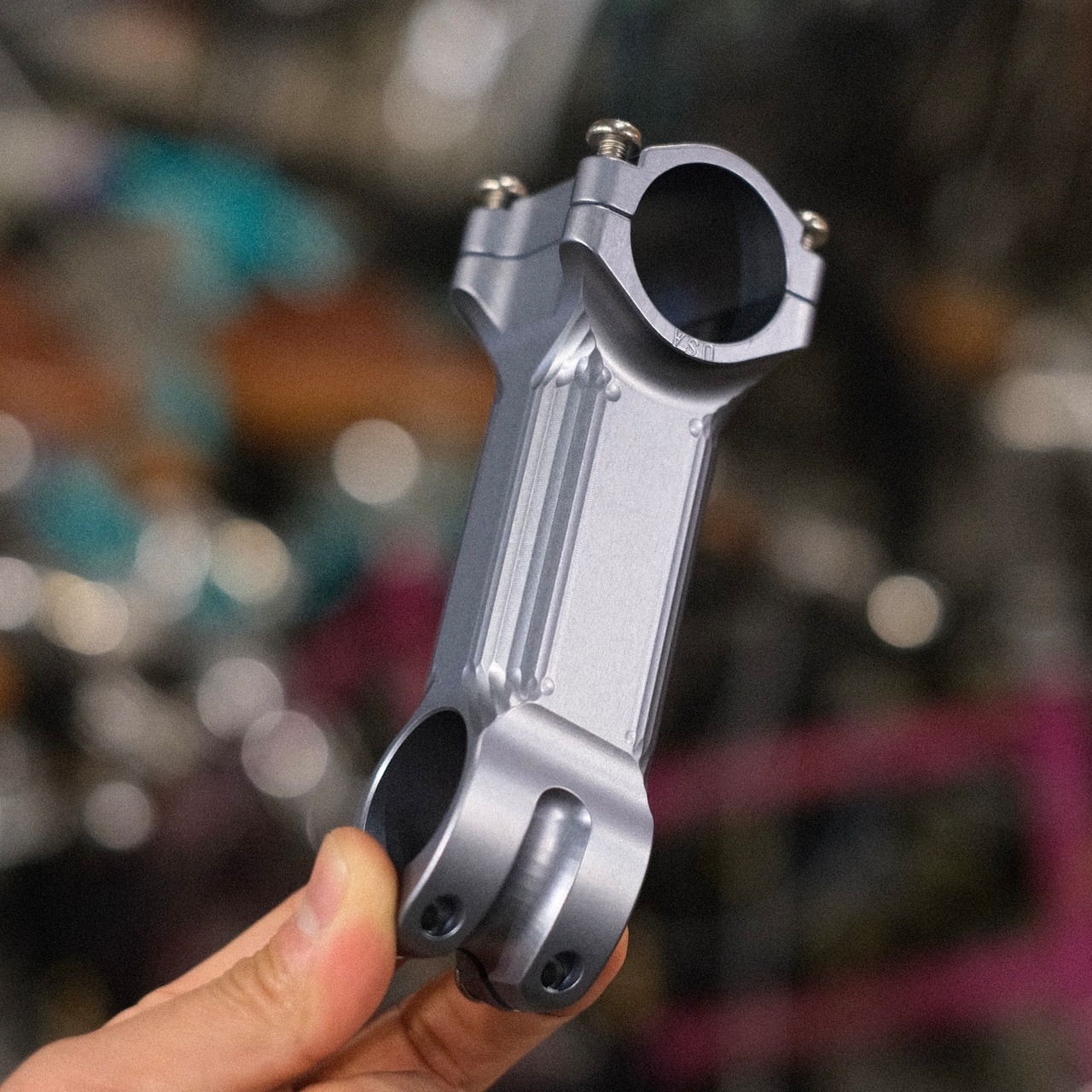 強度や軽さに関しては、1,000,000サイクルの試験、コンピューターで設計を何度も繰り返し、アメリカの航空宇宙アルミニウムを、20種類以上の工具を使用して1つのステムを作ります。